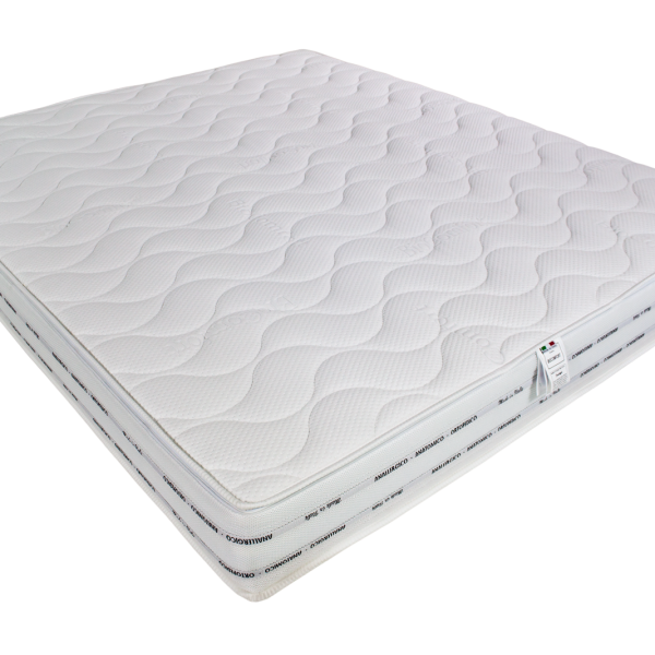 Cashmere e speciali tecnofibre hight resilience sono le materie prime impegate per la realizzazione di questo innovativo tessuto climatizzato e lavabile .Le proprietà termo-regolatrici e igroscopiche del cashmere , unite all'elevata traspirabilità delle fibre vegetali impiegate , garantiscono un corretto microclima in ogni stagione. Antistatico, antibatterico, antiacaro bordato con fascia in ecopelle e imbottito con 400 gr. a mq.